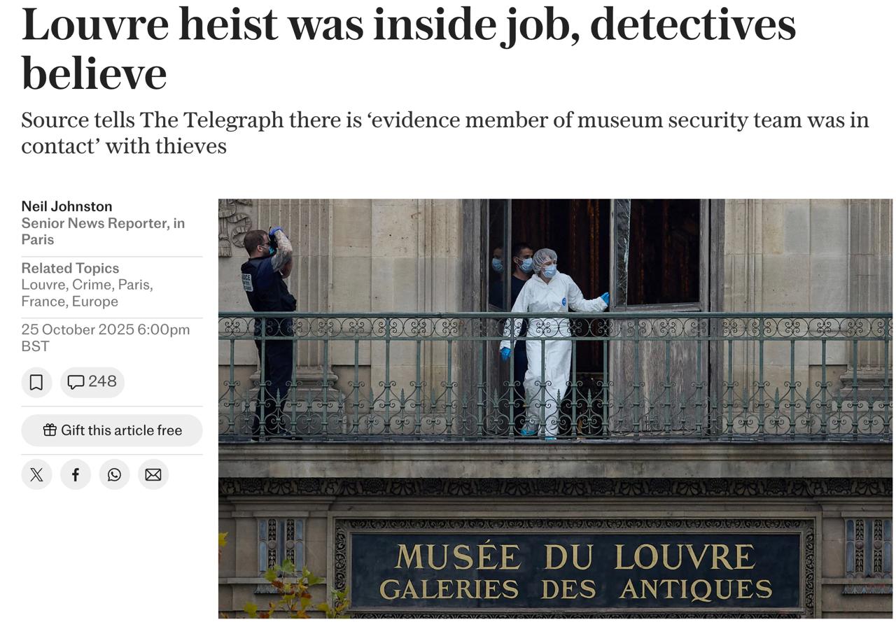 Слідство підозрює охоронців Лувру у причетності до пограбування музею - Telegraph