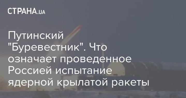 Президент РФ Володимир Путін днями заявив про успішне випробування "Буревісника" - першої у світі крилатої ракети з ядерною руховою установкою. За оприлюдненими Міноборони РФ даними, під час випробування ракета провела у повітрі близько 15 години, подолавши за час польоту 14 тисяч кілометрів. Для порівняння, відстань від Москви до Вашингтона становить лише 8 тисяч кілометрів. Дані щодо проведення випробувань на Новій Землі вже підтвердила розвідка Норвегії.