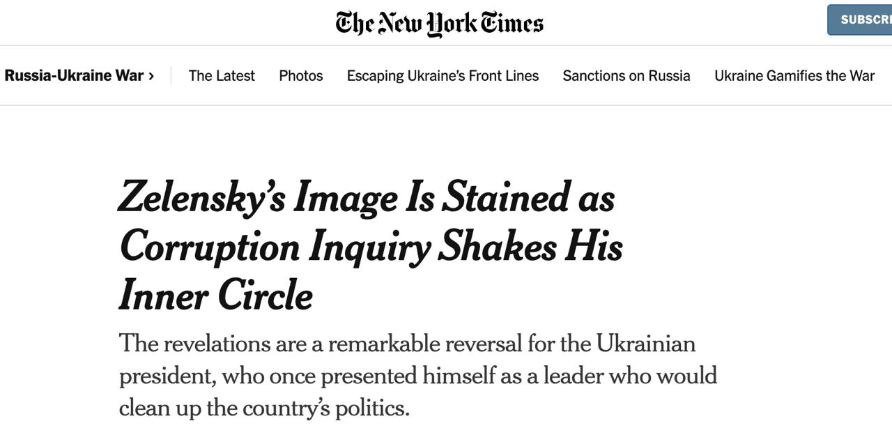 "Эти разоблачения стали для господина Зеленского разительным поворотом событий. Когда-то он создавал себе имидж лидера, который сделает украинскую политику более открытой, избавившись от богатых инсайдеров, известных как олигархи. Теперь, спустя почти семь лет после последних выборов, и поскольку из-за войны новых выборов не предвидится, многие украинцы считают, что он действует в узком, замкнутом кругу, і не підпорядковується правилам", - йдеться у статті.