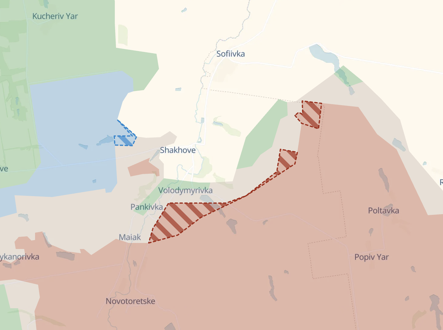 За даними Deep State, просування зафіксовано в районі Рівного та Солодкого. Це район на захід від колишнього Успенівського плацдарму ЗСУ, який росіяни ліквідували минулого тижня.