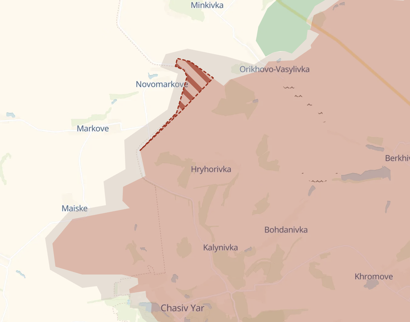 Також російські війська просунулися на північ від Часового Яру - під Новомарковим.