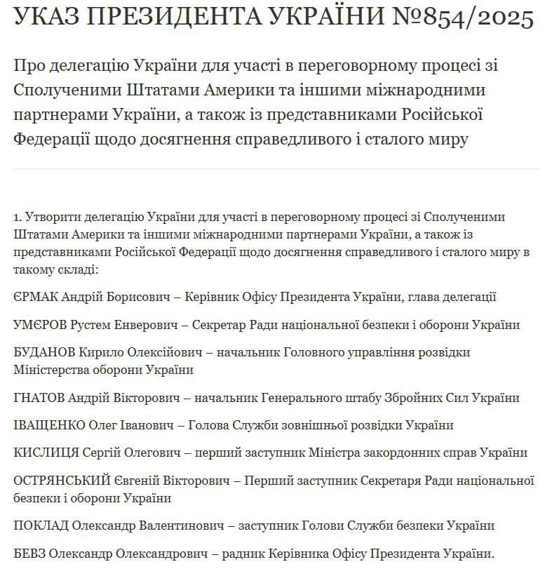 Єрмак, згідно з документом, може за погодженням із президентом вносити зміни до делегації.
