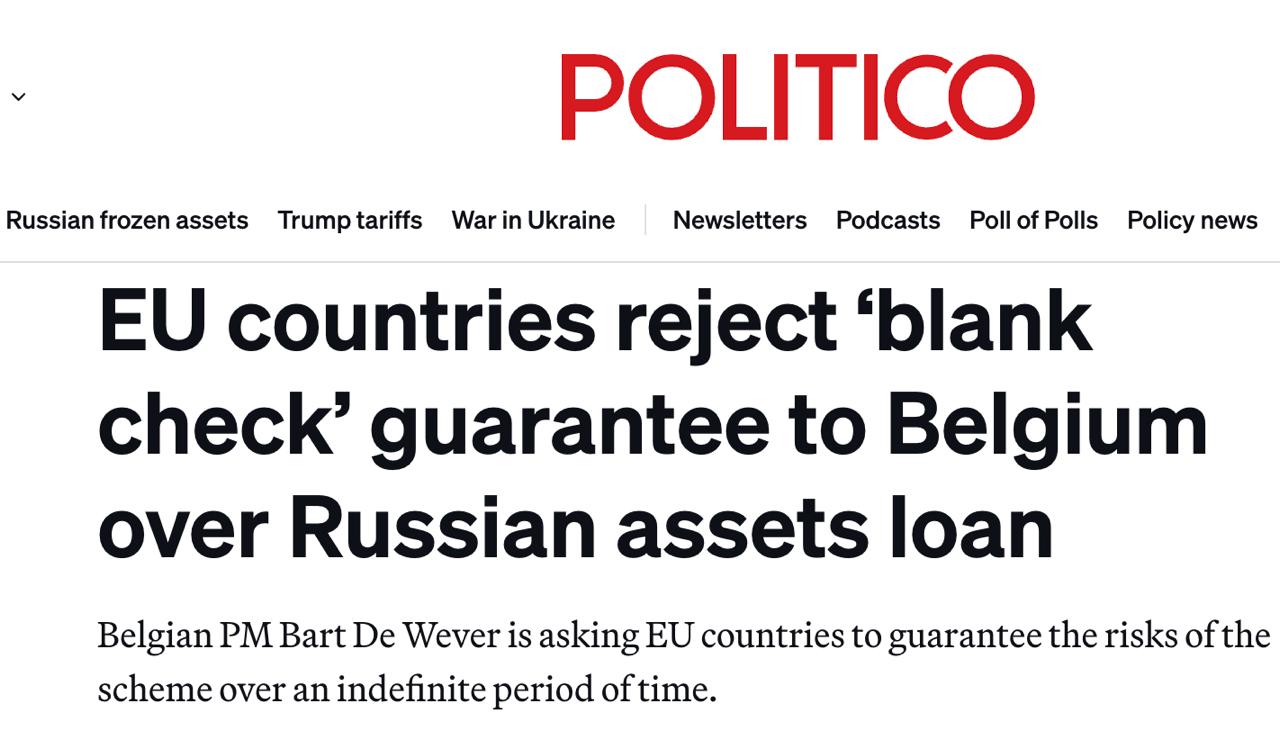 Європейські країни відкинули як надмірну вимогу Бельгії надати їй "гарантії бланкового чека" для надання Україні репараційного кредиту за рахунок заморожених активів РФ.