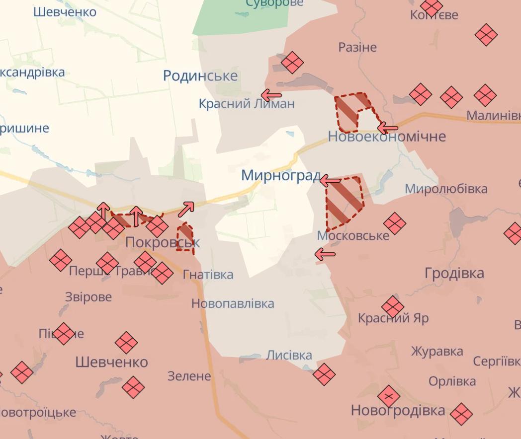 Deep State також не підтверджує повної втрати Покровська, при цьому паблік вказує, що росіяни минулої доби знову просунулися в місті.
