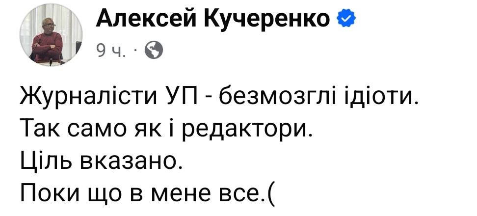 Народний депутат Олексій Кучеренко написав, що журналісти "Української правди", які першими опублікували цю новину, після чого її дали й інші ЗМІ, "безмозкі ідіоти".