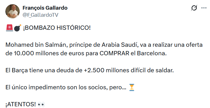 Про це повідомив журналіст El Chiringuito Франсуа Гальярдо на своїй сторінці у соціальній мережі X.