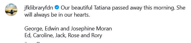 Про це повідомили представники родини Кеннеді в Інстаграмі.