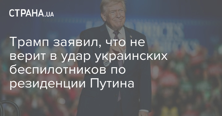 Президент США Дональд Трамп заявив, що не вірить у удар українських безпілотників по резиденції російського лідера Володимира Путіна у Новгородській області РФ.
