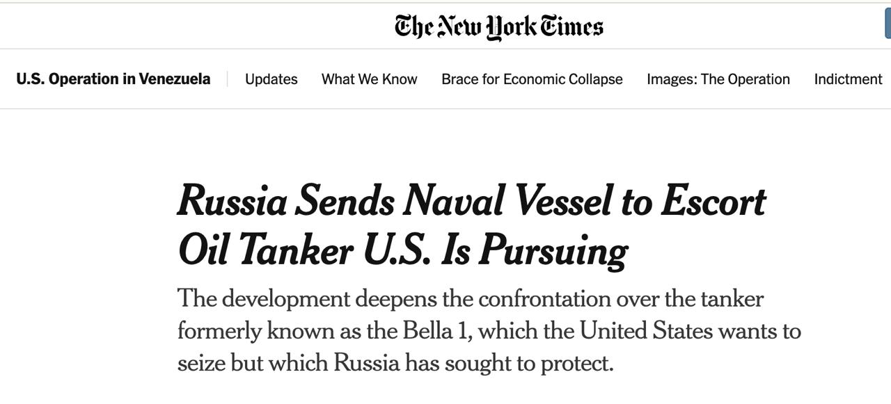 Танкер "Белла 1" більше двох тижнів намагався обійти блокаду США проти Венесуели, але не зміг пришвартуватися та завантажитись. Екіпаж судна відбив спробу США взяти його на абордаж у грудні і вийшов в Атлантичний океан.