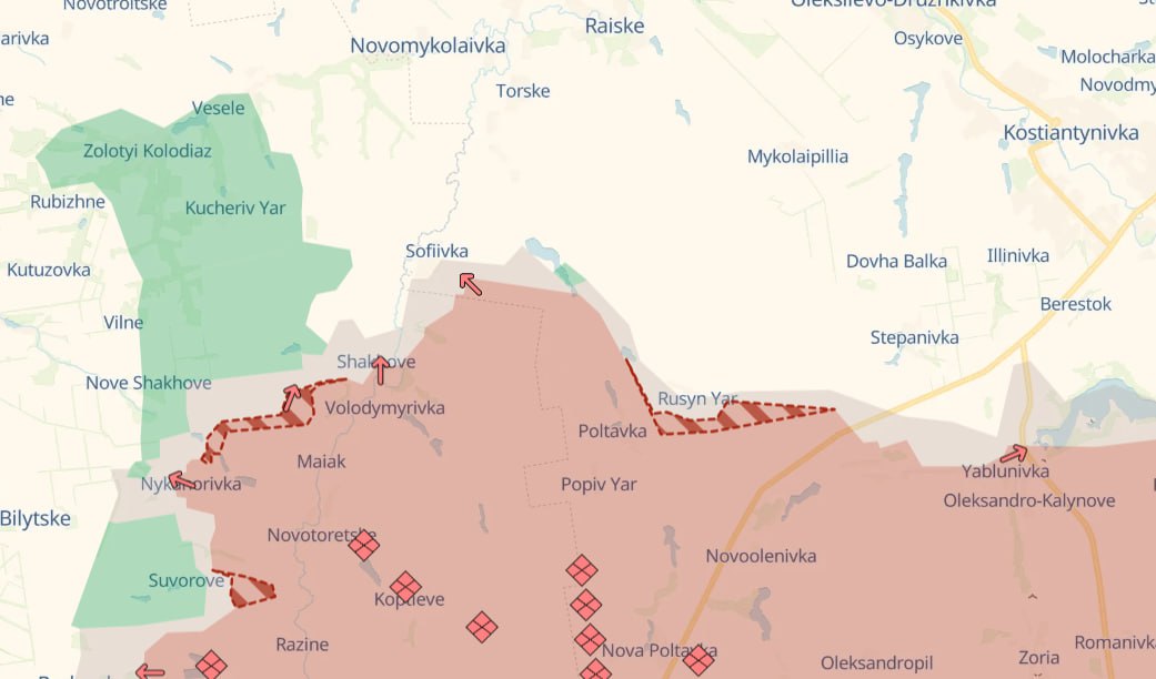 Армія РФ просунулась біля Русина Яра та Нового Шахового та у Федорівці у виступі на схід від Костянтинівки, повідомляє Deep State.