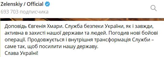 Перед цим Зеленський призначив Євгена Хмару виконувачем обов'язків голови СБУ. Колишній речник СБУ Станіслав Речинський повідомляв, що Хмара - "автор і організатор дронових атак" на Росію, зокрема операції "Павутина" - атаки на стратегічну авіацію РФ.