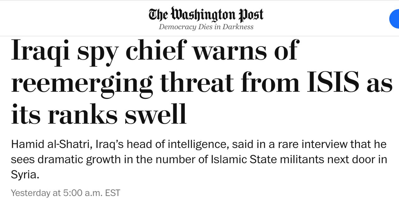 Глава іракської розвідки Хамід аш-Шатрі попереджає про поновлену загрозу організації "Ісламська держава" (ІДІЛ) через різке зростання числа бойовиків у Сирії за останній рік.