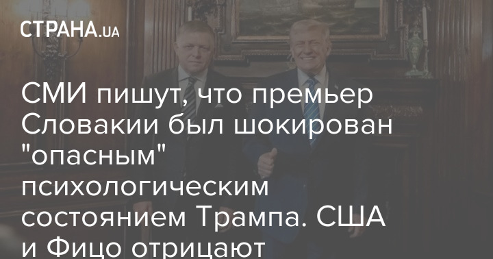 Прем'єр-міністр Словаччини Роберт Фіцо шокував "небезпечний психологічний стан" президента США Дональда Трампа після зустрічі з ним у Мар-а-Лаго.
