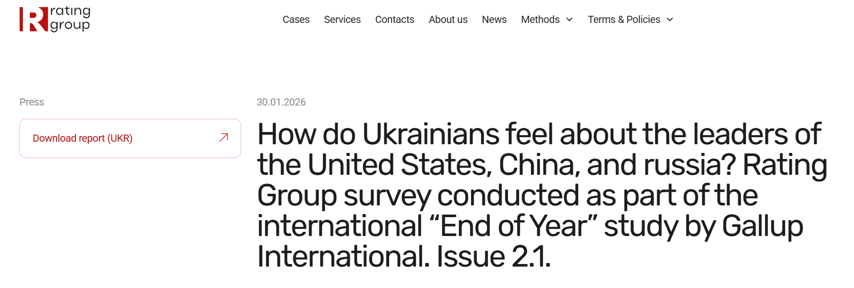 Rating Group – одна з найбільших дослідницьких інституцій України, яка працює на ринку з 2008 року. Компанія зареєстрована в Україні та має значний досвід проведення соціологічних опитувань як в Україні, так і за кордоном.