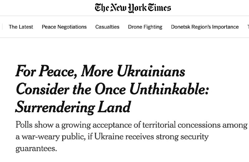 "Опитування показують дедалі більшу готовність до територіальних поступок серед втомленого від війни населення за умови надання Україні надійних гарантій безпеки", - йдеться у статті видання.