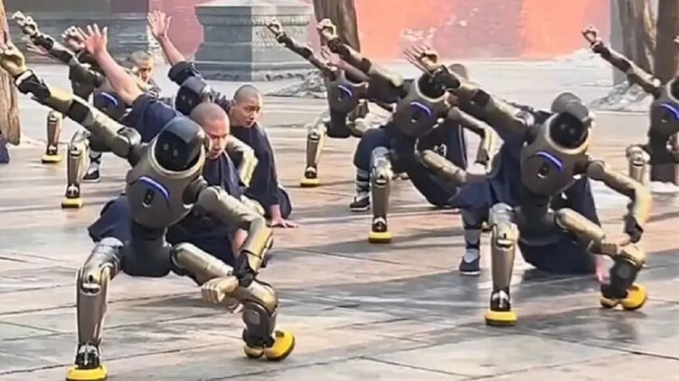 У Шаоліньському монастирі роботів використовують для навчання кунг-фу. На відео численні роботи демонструють плавні рухи, удари, що імітують, а також атакуючі стійки в стилі шаоліньського кунг-фу, створюючи унікальну сцену бойових мистецтв у знаменитому стародавньому храмі.