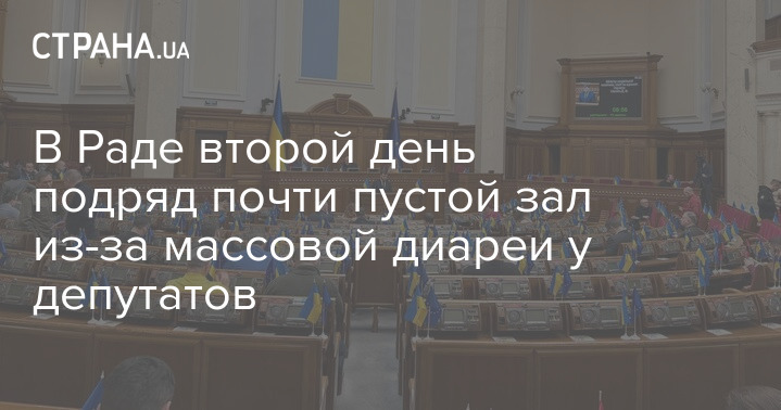 Сьогодні у сесійній залі Верховної Ради знову було вкрай малолюдно через масове отруєння народних депутатів, яке супроводжується проносом та високою температурою.