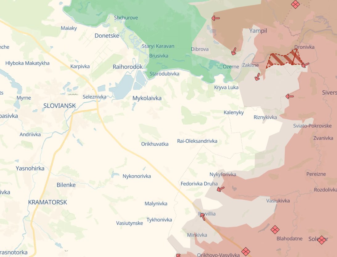 Російські війська просунулися в районі Платонівки на Слов'янсько-краматорському напрямку Донецької області.