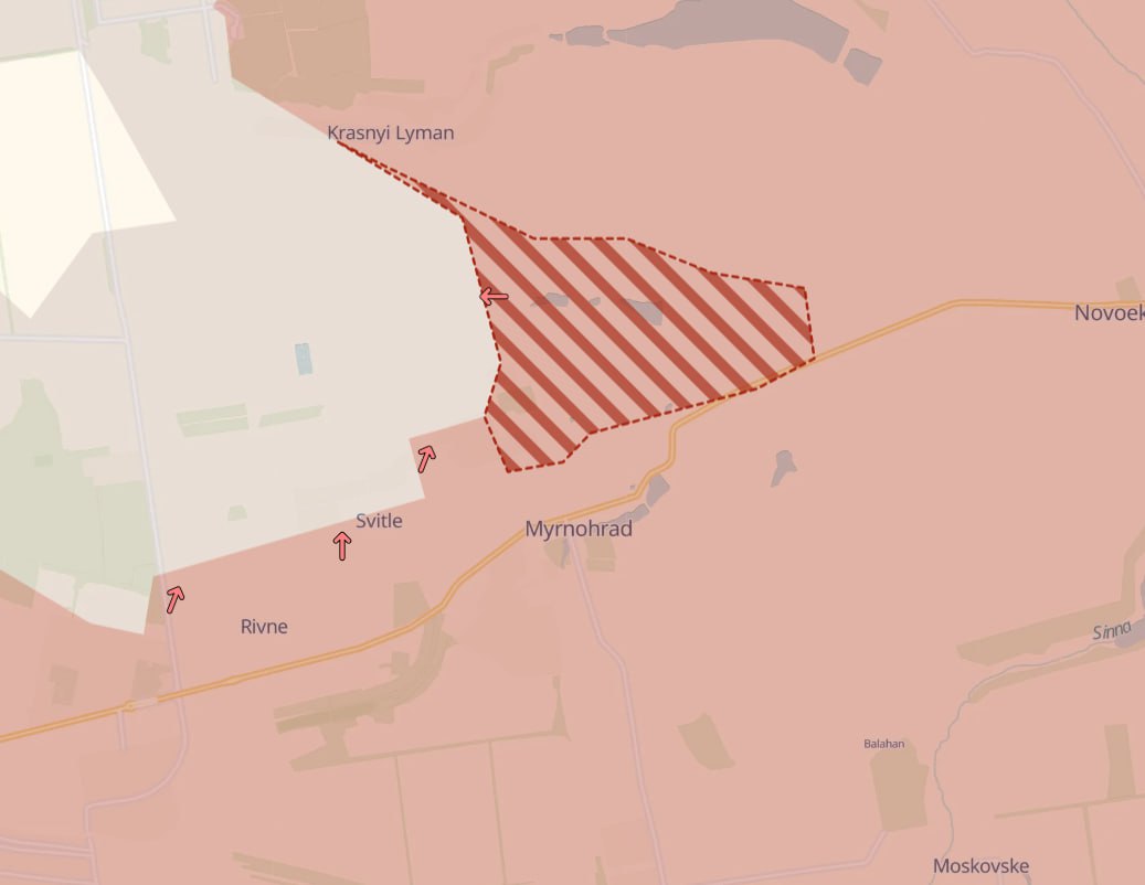 При цьому повідомляється і про просування росіян у Мирнограді.