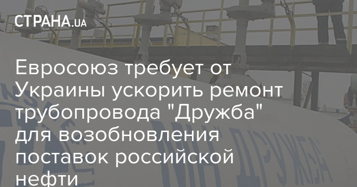 Євросоюз вимагає від України прискорити ремонт трубопроводу "Дружба" для відновлення постачання російської нафти