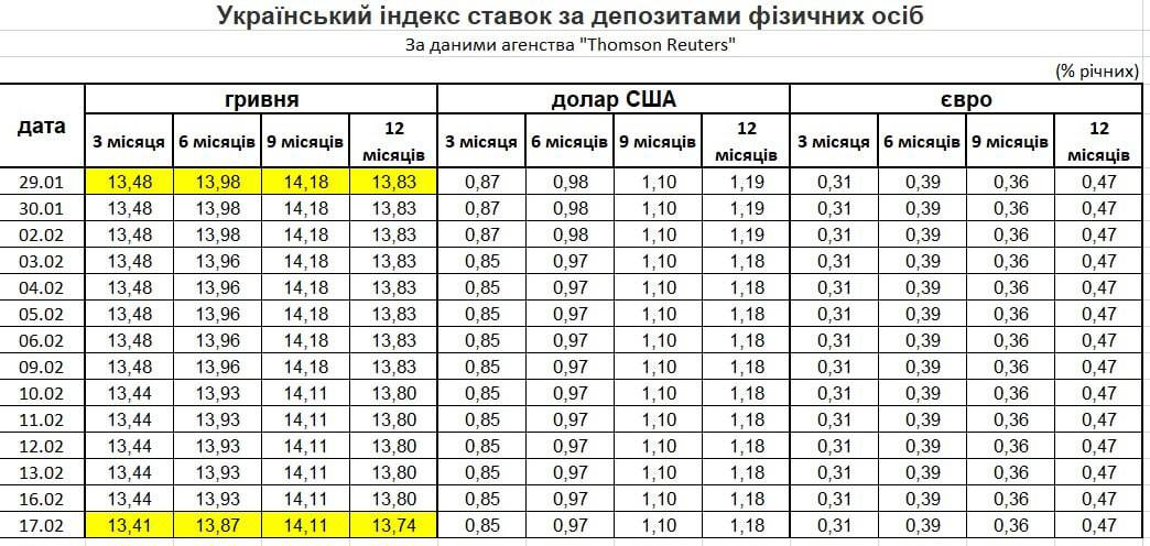 2. Зниження депозитних ставок за гривневими вкладами: з початку лютого середні прибутковості за вкладеннями фізосіб втратили 0,07-0,09% - досягли 13,41% річних за 3-місячними депозитами та 13,74% річних за 12-місячними. Це до сплати податків. А після оподаткування людині залишать лише 10,3-10,6% річних.