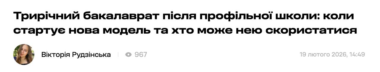 Цьогорічні випускники шкіл стануть абітурієнтами після 11-го класу. А 2029 року в Україні з'являться перші випускники пілотних трирічних ліцеїв, які вступатимуть до вузів вже після 12-го класу. Їм буде доступний трирічний бакалаврат.
