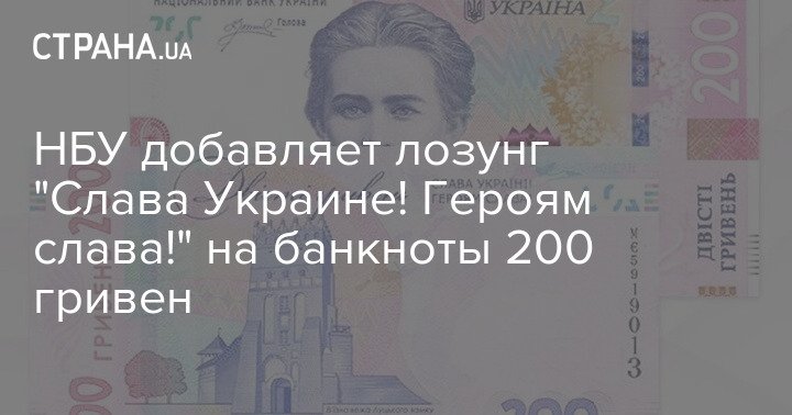 Національний банк з 25 лютого почне розміщувати гасло "Слава Україні! Героям слава!" на банкнотах номіналом 200 грн.