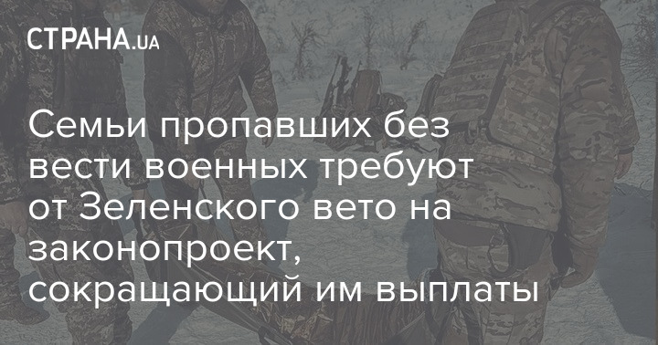 Сім'ї військових, що зникли безвісти, вимагають від президента України Володимира Зеленського накласти вето на законопроект, який скорочує виплати родичам цієї категорії бійців.