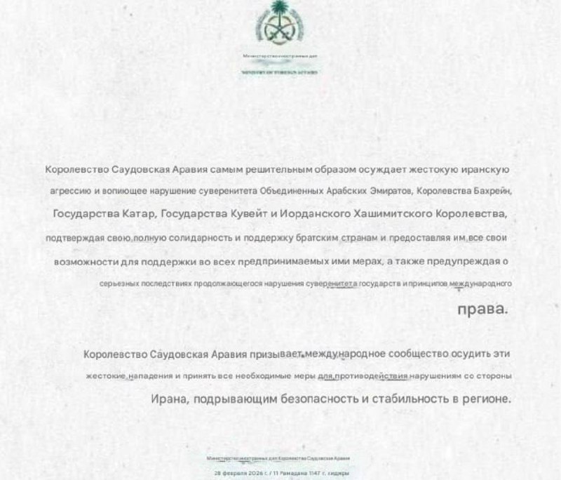 Саудівська Аравія та ОАЕ нібито оголосили війну Ірану та приєднуються до ударів по ньому.