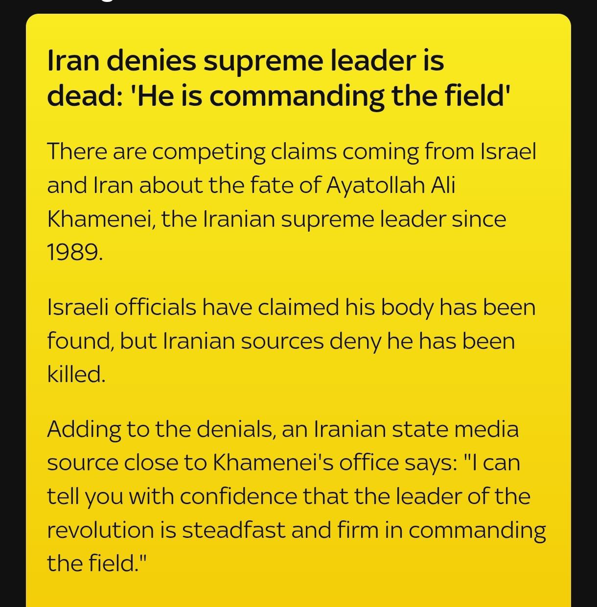 Хаменеї живий і продовжує керувати країною, пише телеканал Sky News із посиланням на іранські державні ЗМІ.