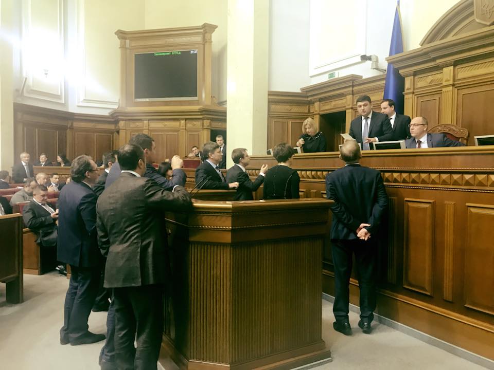Затем осаждать премьера принялись глава президентской фракции БПП Артур Герасимов и глава парламентского комитета по вопросам налоговой и таможенной политики Нина Южанина. Количество депутатов у правительственной ложи стремительно росло. Депутаты отвлекались только на голосование, возвращаясь на свои места. Затем они вновь возвращались к Гройсману.
