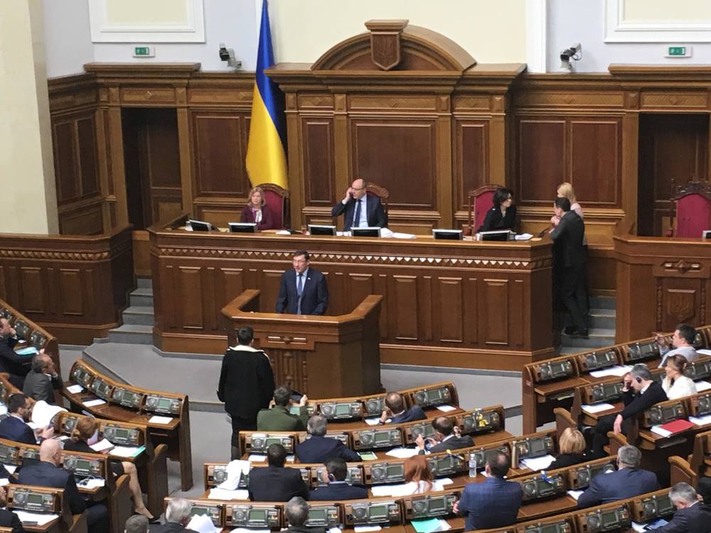 Диссонансом звучали лишь два выступления. Во-первых, глава фракции Оппозиционного блока Юрий Бойко назвал происходящее цирком, напомнил, что до сих пор не наказаны исполнители и организаторы теракта под Радой 31 августа 2015 года, и ОБ не будет голосовать за снятие неприкосновенности с депутатов до тех пор, пока ее не отменят и для всех нардепов, и для президента.