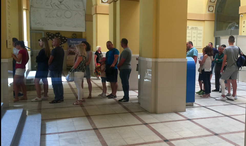 В Украине не прекращаются очереди за биопаспортами, по которым многие едут на заработки в ЕС. Фото А. Харченко
