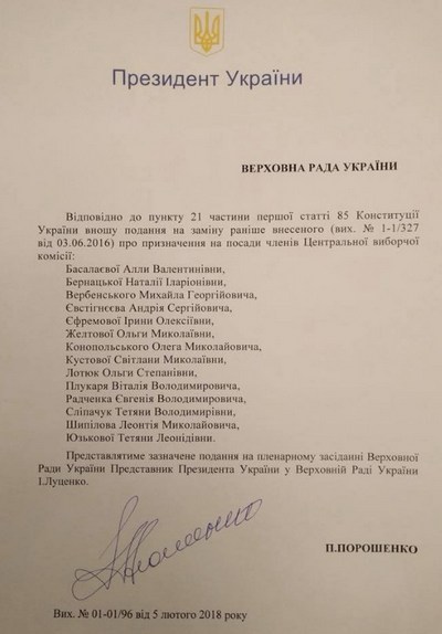 Представитель президента в парламенте Ирина Луценко, в свою очередь, отмечает, что голосование за избрание новых членов Центральной избирательной комиссии будет происходить по количеству набранных голосов каждым из кандидатов.