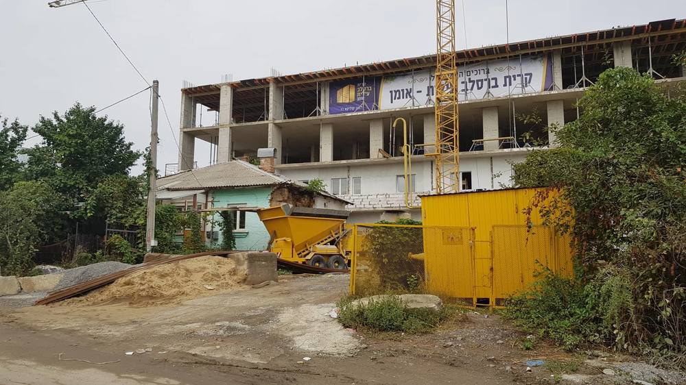 "В этом голубом доме жила семья, у них было несколько комнат. Хасиды выкупили дом и землю и теперь строят себе четырехэтажную гостиницу, а за ней будет еще одна. За те деньги, за которые семья продала этот дом смогла взамен купить себе две квартиры", -  рассказывает соседка Тамара.
