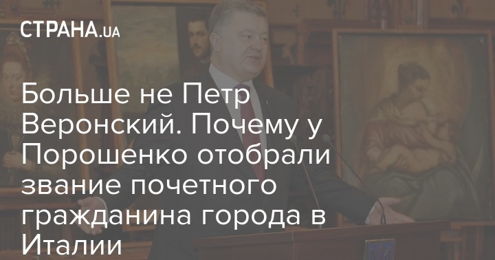 У президента Украины отобрали звание почетного гражданина города, которое ему присвоили за возвращение в мае 2016 года 17 похищенных ценных картин. Тогда его в шутку называли "Петр Первый Веронский".