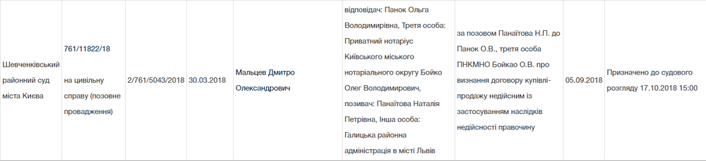 Параллельно женщина подала иск к Ольге Панок, добиваясь признания договора купли-продажи квартиры площадью 191 м2 на Тараса Шевченко недействительной.