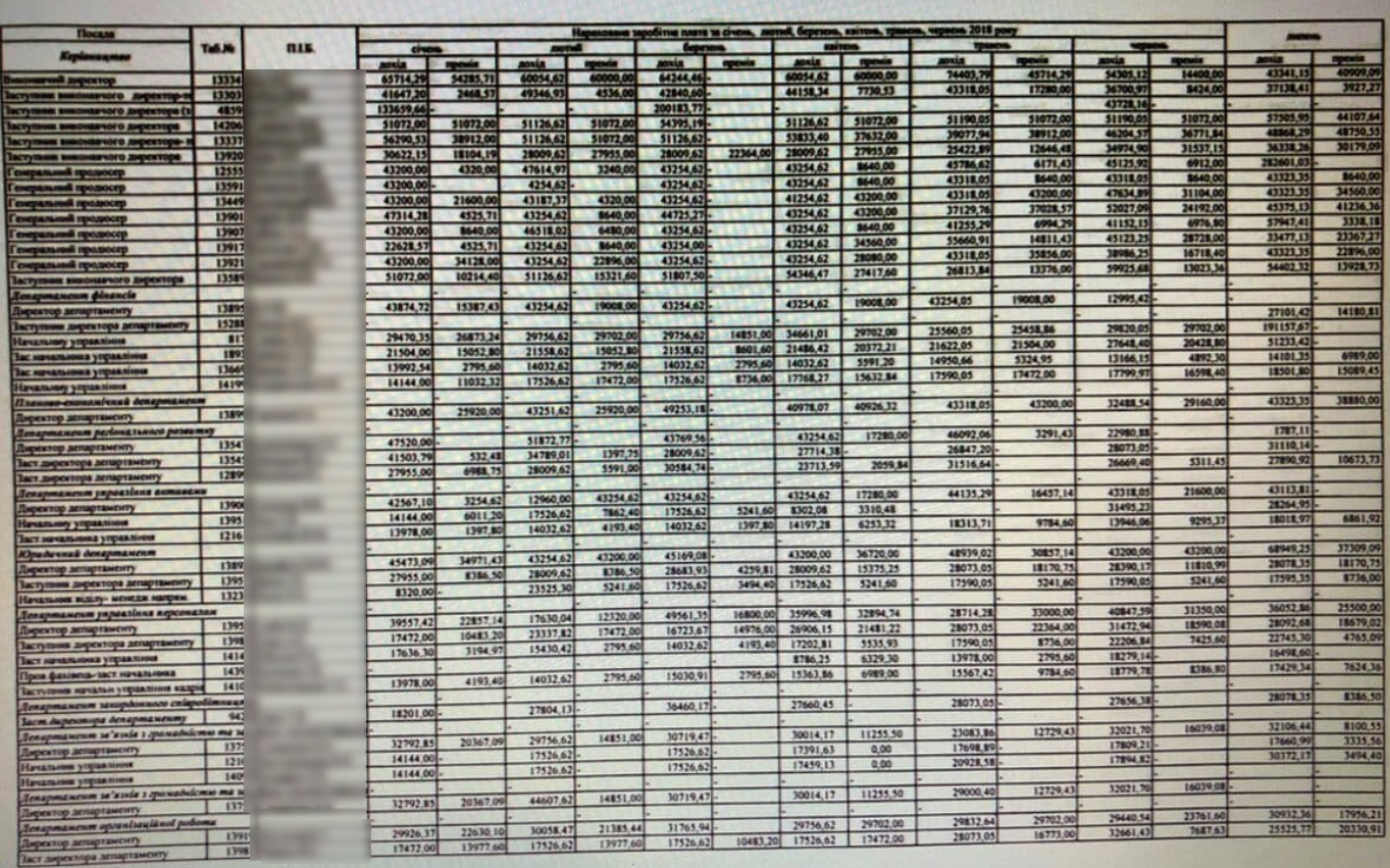 В распоряжении "Страны" оказался документ, в котором подтверждается, что в 2018 году ежемесячно руководители получали премии. К примеру, лишь за 5 месяцев исполнительный директор получил более 300 тысяч гривень премии и почти 400 тысяч - основной зарплаты. Четыре его заместителя почти каждый месяц также поощрялись - на 37- 54 тысяч каждый.