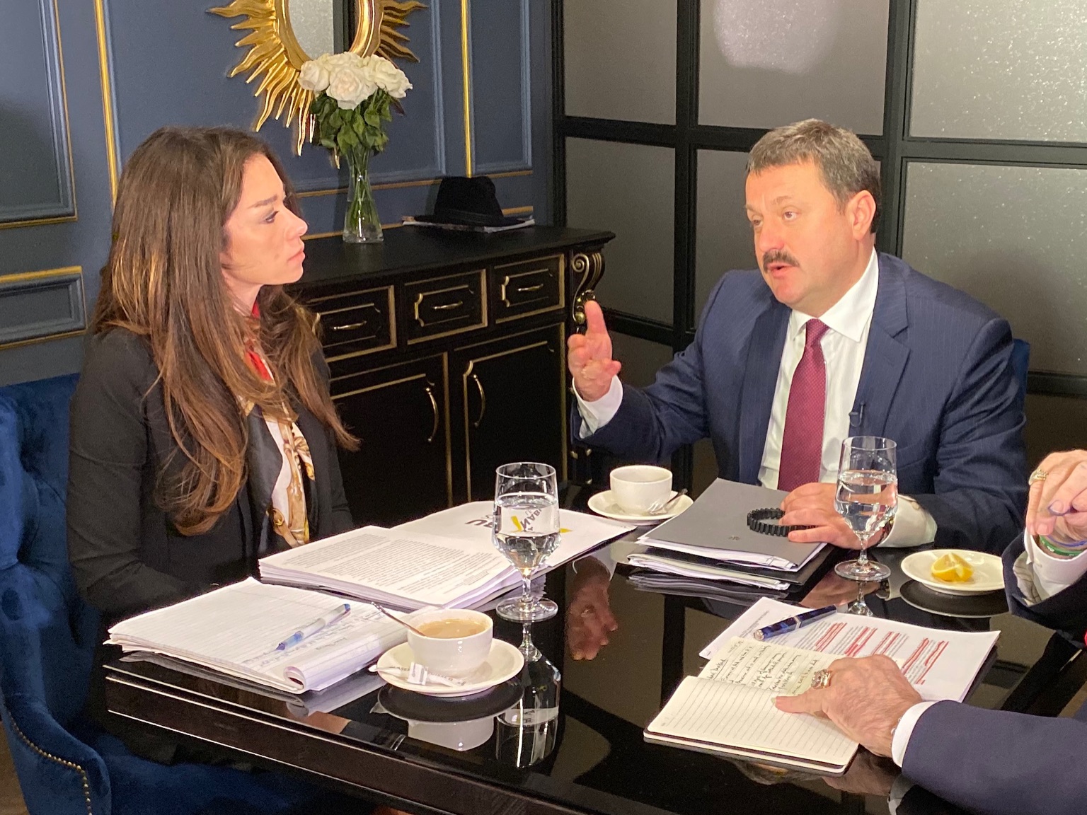 Следующим героем фильма стал нардеп Андрей Деркач, с которым, судя по антуражу, журналисты и Джулиани встретились в том же помещении, что и с Шокиным.