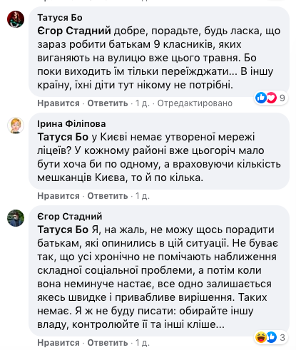 "Я, к сожалению, не могу что-то посоветовать родителям, которые оказались в такой ситуации... – отписывается бывший замминистра. – Я же не буду писать: выбирайте другую власть, контролируйте ее, и другие клише".