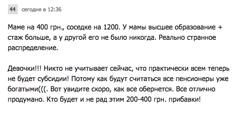 В общем, в реальности ситуация отнюдь не такие красочная, как в информационной кампании Министерства соцполитики. Большие повышения - это скорее исключение, чем правило. В основном прибавка составляет в пределах 150-400 гривен.
