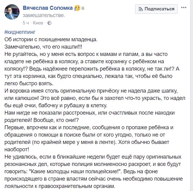 В то же время, в сети ширятся и вовсе конспирологические версии о том, что "вышгородское похищение" могло быть частью инсценировки, организованной МВД для отвлечения внимания общества.