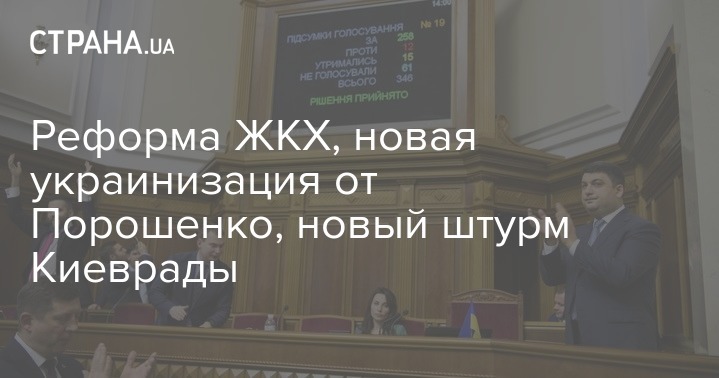 Пока Рада занималась ЖКХ и субсидиями, президент вдруг решил, что она занимается не тем, чем надо. И через "Фейсбук" потребовал от депутатов украинизировать сферу услуг. Украинизировать где-то так, как как украинизировали сферу образования – то есть "со всем уважением" к языкам нацменьшинств, которое будет заключаться в полном запрете на их использование.