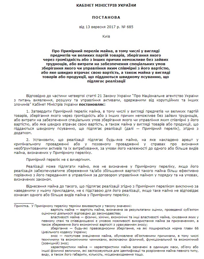 С 5 октября стартовал процесс перерегистрация "имущества Клименко" на Нацагентство. Прокуроры для этого использовали постановление Кабмина №685, принятое 13 сентября 2017 года, а также лазейку в УПК (утвержденную парламентом 18 февраля 2016 года). Последняя, в частности, дает право правоохранителям арестовывать и оборачивать имущество так называемых "третьих лиц".