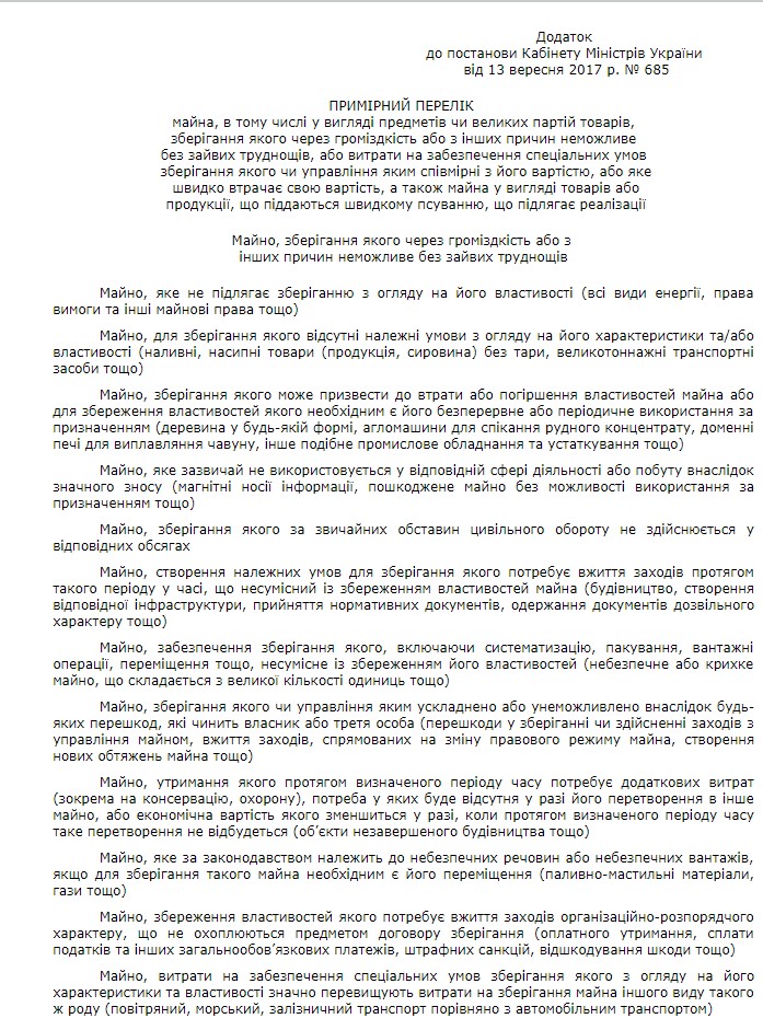 Что не менее важно - в правительстве заранее подвели под возможное оборачивание абсолютно любое имущество, сделав ремарку о том, что "перечень не является исчерпывающим". То есть под действие постановления №685 подпадает вся собственность, на которую наложен арест в уголовном или даже исковом производстве в делах о признании необоснованными активов и их истребовании.