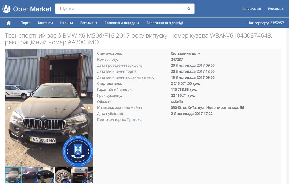 Автомобиль, который продали в рамках "экса" Клименко, источник фото: setam.net.ua