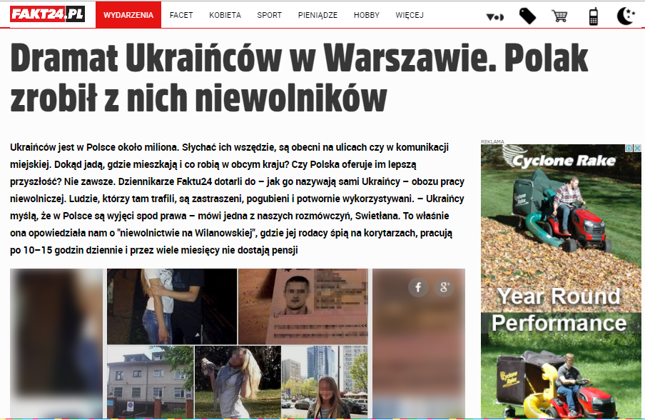 В сентябре прошлого года интернет-издание fakt24.pl опубликовало материал под названием "Драма украинцев в Варшаве. Поляк сделал из них рабов", в котором рассказало о лагере, где использовался рабский труд украинцев.