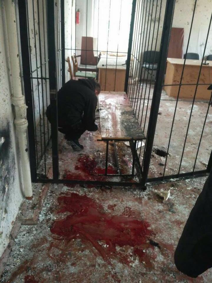 Во-первых, прямо на месте - в разгромленном зале суда, скончался подрывник Тапаев-старший. По информации источников "Страны" в Нацполиции, около мужчины было найдено три кольца от гранат.