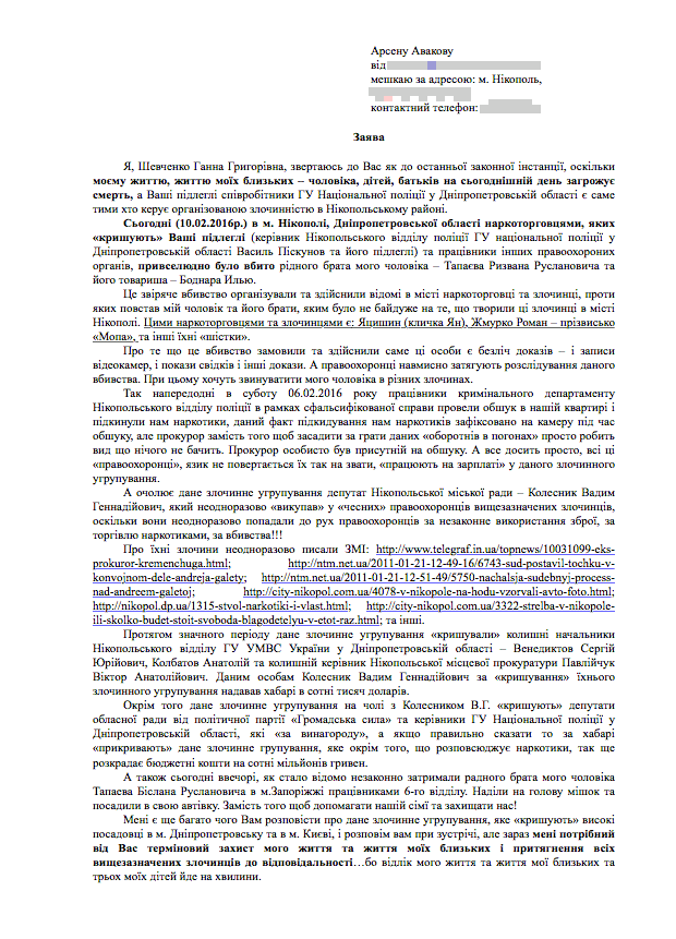 Открытое письмо, направленное главе МВД представителями семьи Тапаевых после убийства Ризвана, источник фото: zanoza-news.com