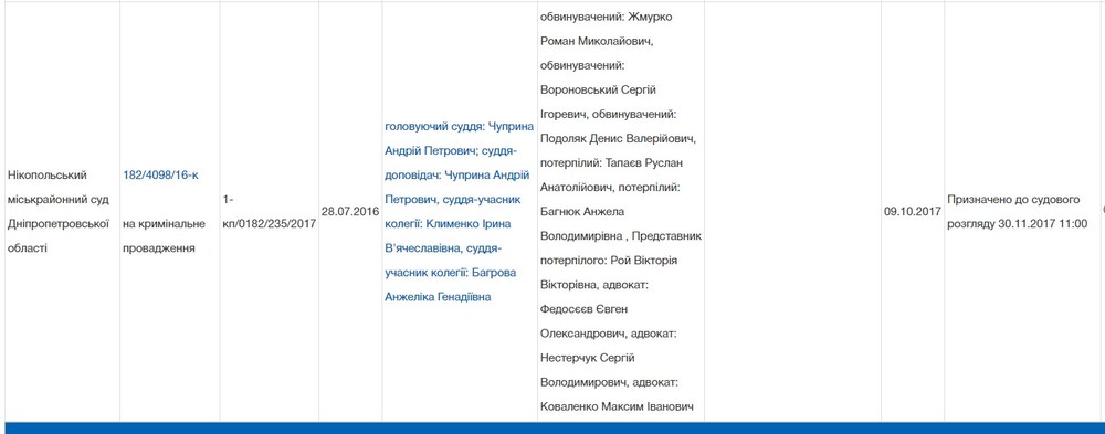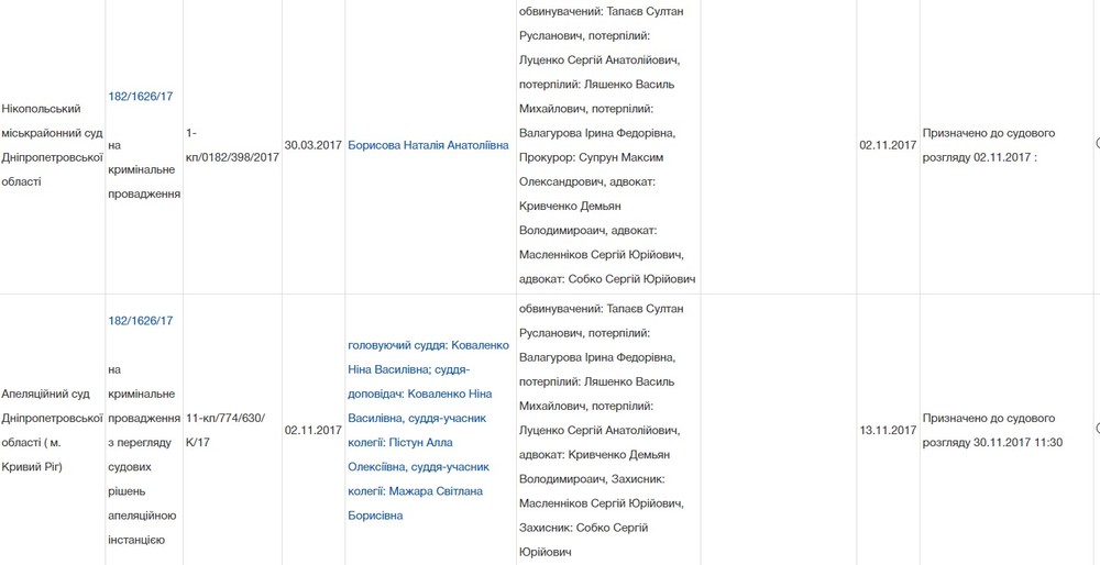 К слову, это слушание должно было начаться на полчаса позже заседания в суде Никополя (эти служители Фемиды не участвовали в заседании 30 ноября по делу об убийстве Ризвана Тапаева).